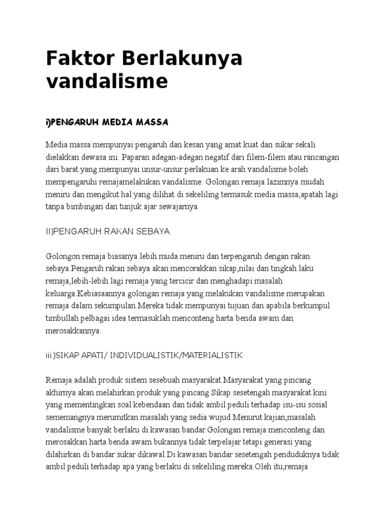 Faktor Berlakunya Vandalisme Pdf